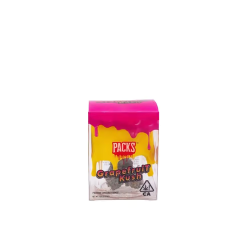 Packwoods Packs Grapefruit Kush premium indoor flower 1/8’s cultivated by Preferred Gardens. Grapefruit Kush’s story starts in Vancouver, BC, Canada. The team at Next Generation Seed Company combined BC Kush and Grapefruit OG to form this sweet and citrusy strain with a strong, pleasing aroma. Next Generation claims that Grapefruit Kush tends to produce a happy high and recommends this strain for medical users. 3.5g.